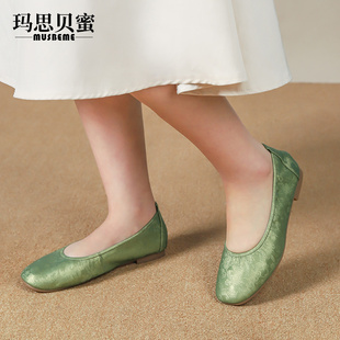 女夏2025新款 皮鞋 春秋平底妈妈鞋 夏季 蛋卷鞋 真皮浅口软皮软底单鞋