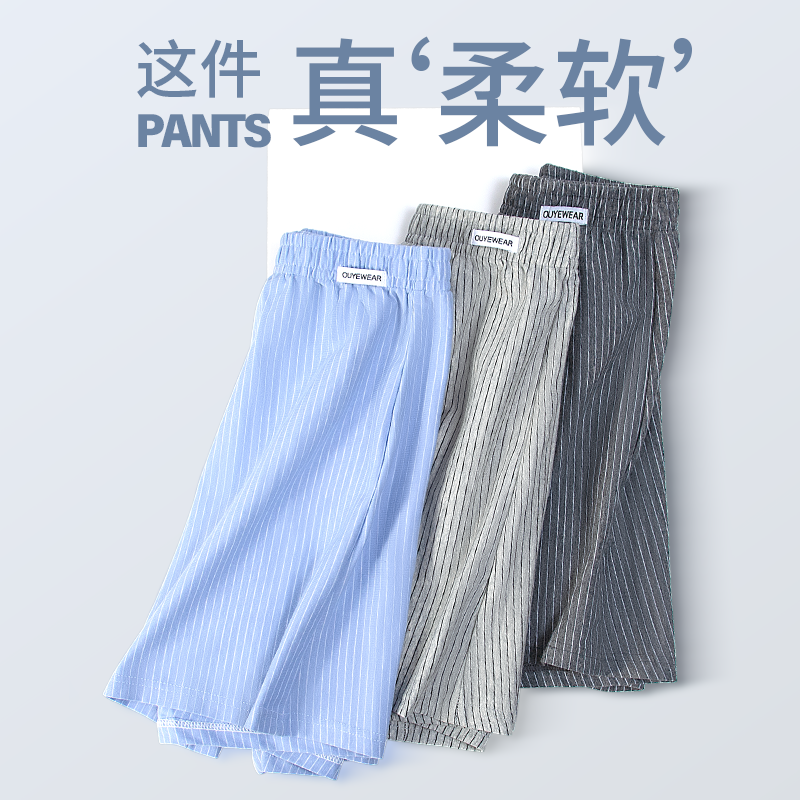 内裤 纯棉四角裤 睡裤 阿罗裤 平角裤 男士 居家裤 家居超薄条纹 男宽松版