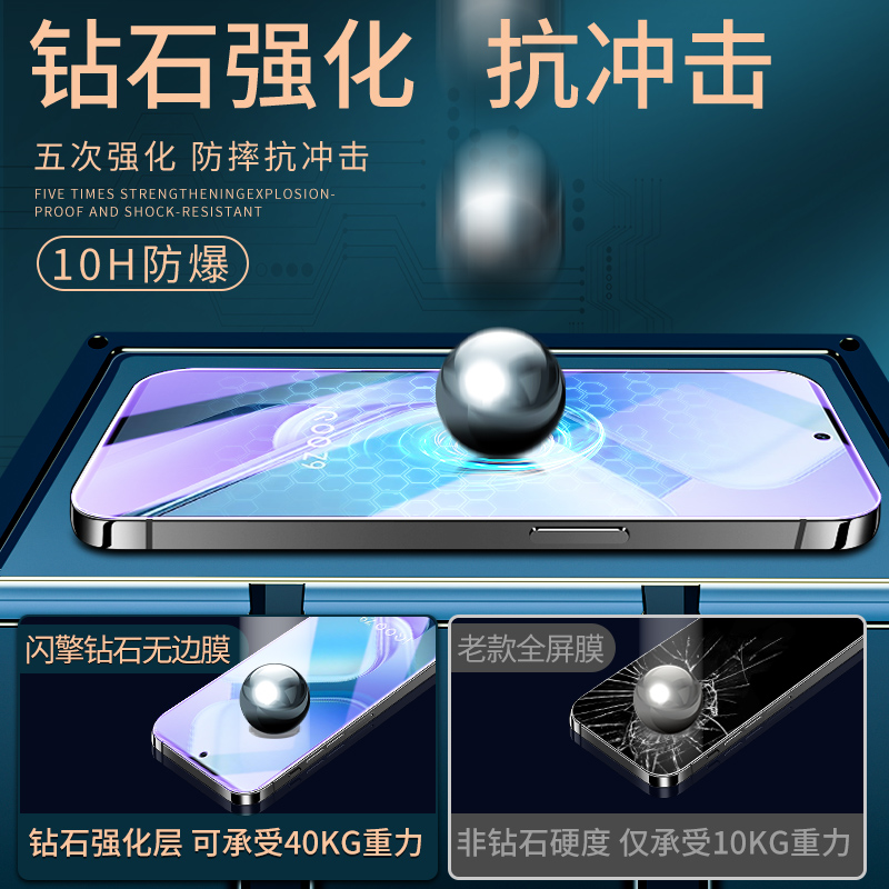 适用iqooz9钢化膜高清抗蓝光vivoiqooz9turbo 抗摔保护 手机贴膜防指纹无白边iqooz9x全屏全覆盖玻璃长续航版