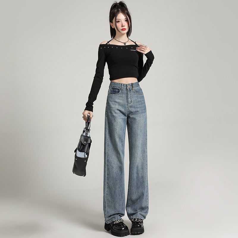 女2025年新款 裤 春秋窄版 早秋宽松爆款 子 阔腿裤 高腰浅色直筒牛仔裤