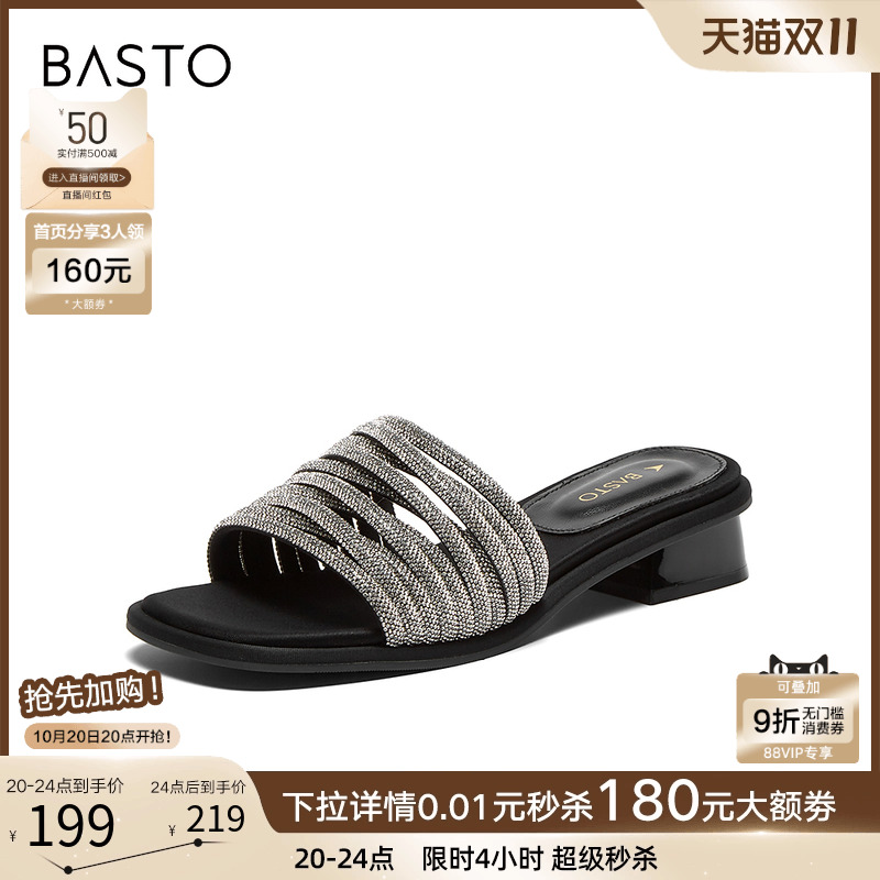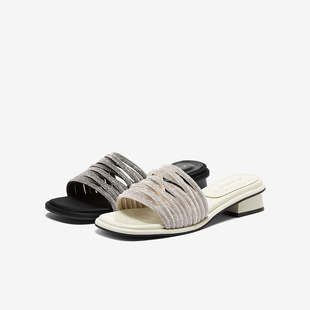 A5251BT4 气质闪钻一字拖粗跟女外穿拖鞋 百思图夏商场新款 时尚
