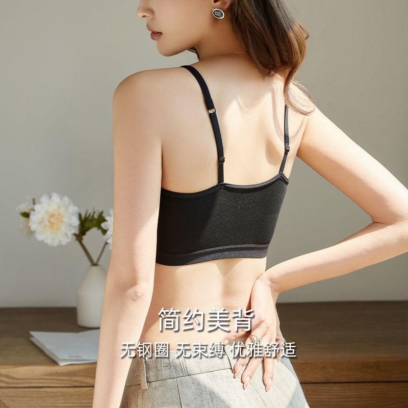 美背内衣全罩杯小胸聚拢抹胸 薄款 法式 黑色瑜伽文胸吊带背心女夏季
