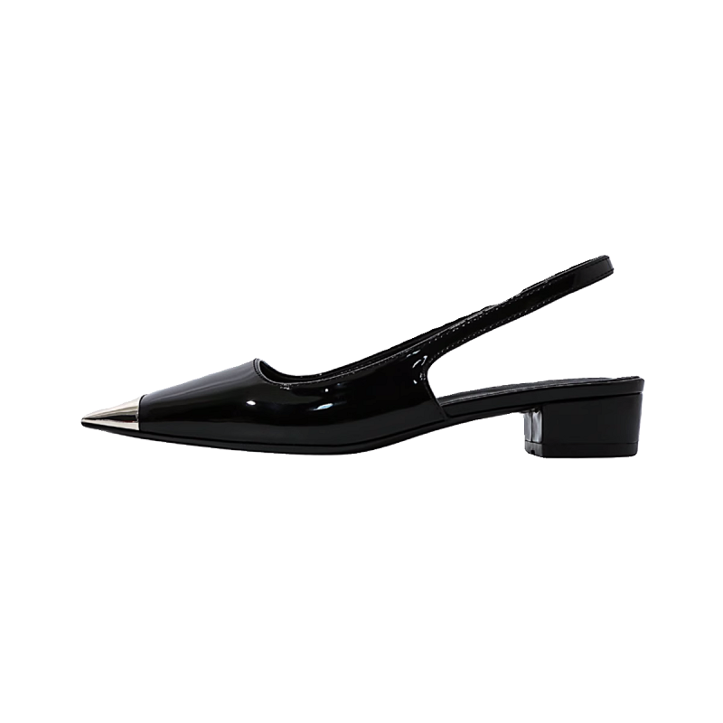 高跟鞋 高级感黑色金属头朴彩英方头粗跟单鞋 女 2025新款 半包头凉鞋