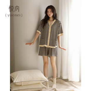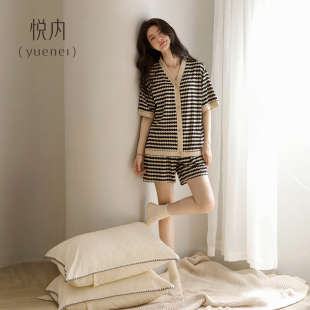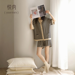 夏季 休闲时尚 短袖 纯棉质家居服夏款 条纹可外穿 短裤 悦内睡衣女士款