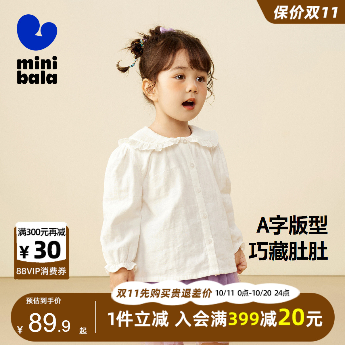儿童女孩纯棉娃娃领小衫 新款 上衣潮 2024秋装 迷你巴拉巴拉女童衬衫