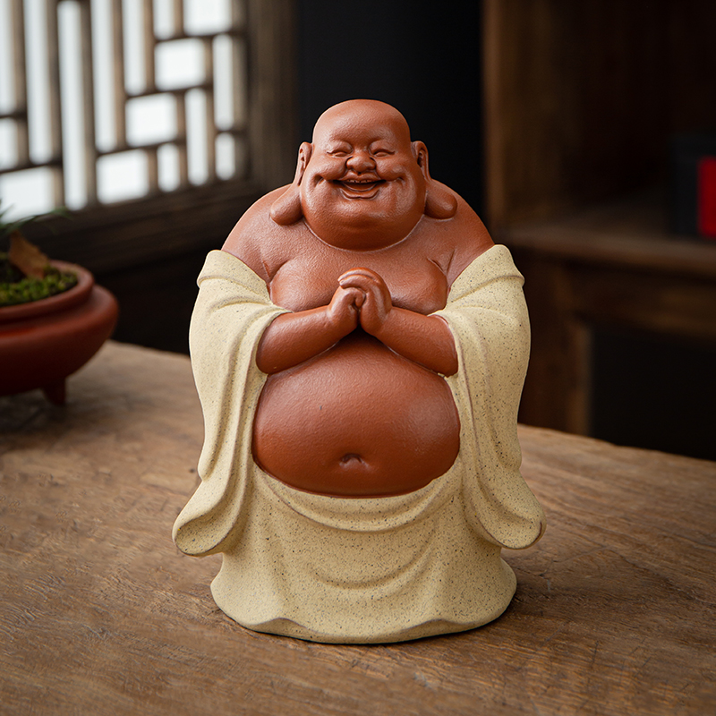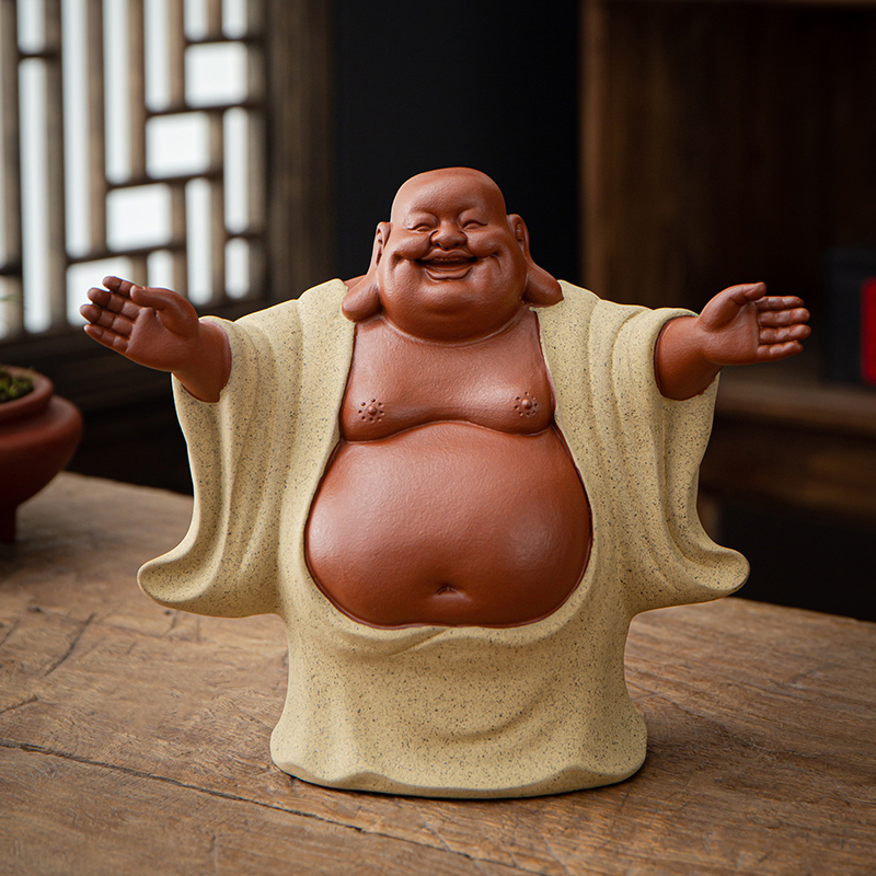 宇轩 紫砂茶宠招财大号弥勒佛件摆手工精品茶玩茶配办公家居摆件