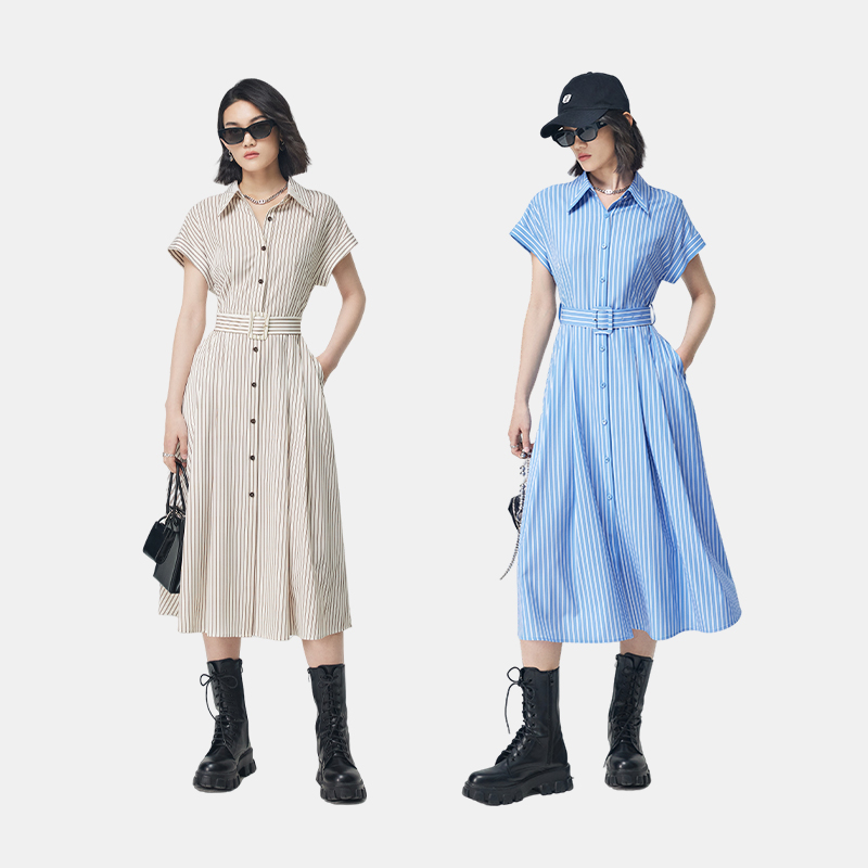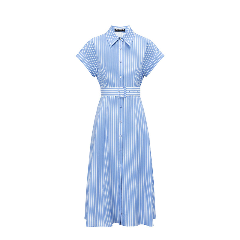 FF仿佛夏季 显瘦好看设计感精 气质条纹连衣裙收腰修身
