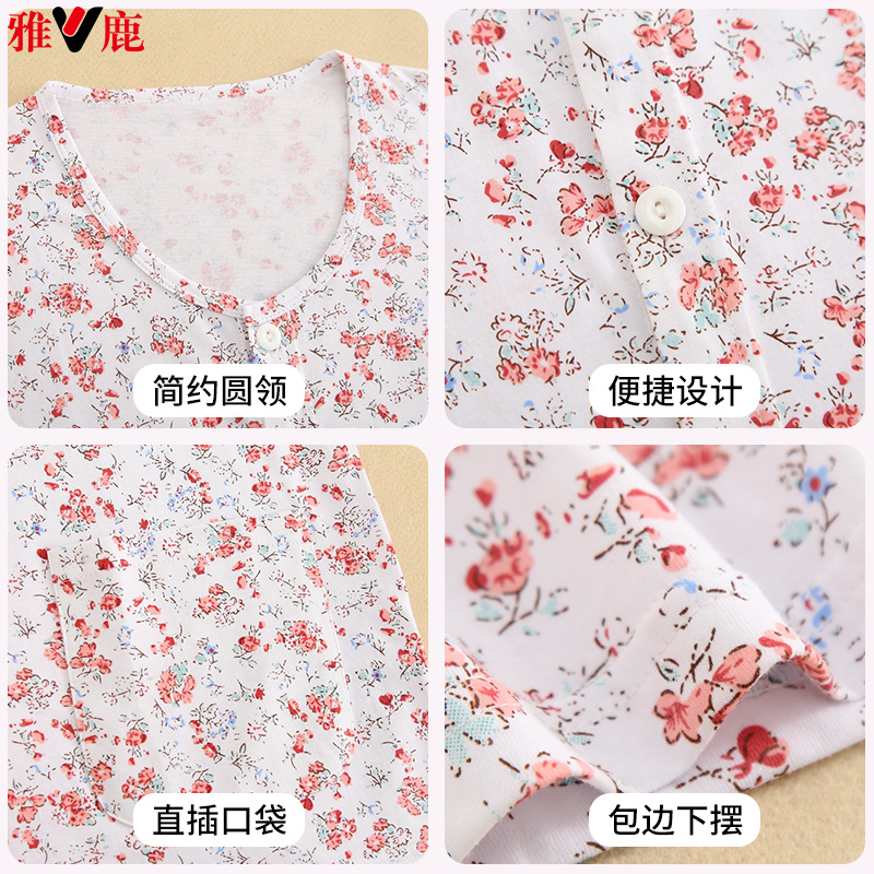 单上衣老太家居服 宽松碎花短袖 雅鹿中老年开衫 睡衣女妈妈纯棉大码