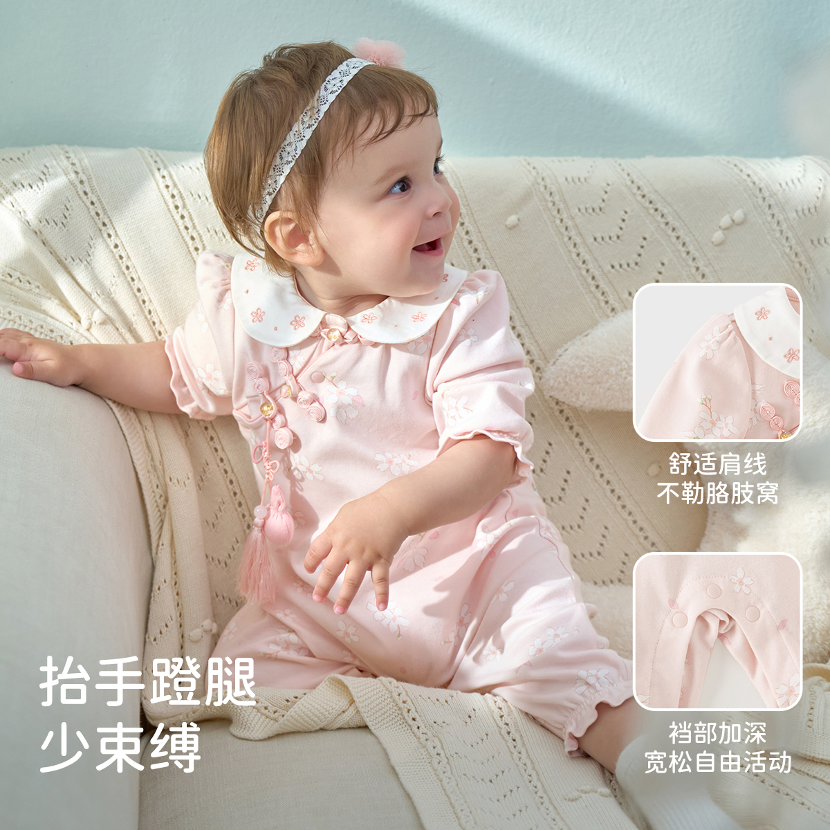 戴维贝拉新生儿爬服2025秋装 女宝宝婴儿衣服连体衣国风爬爬服 新款