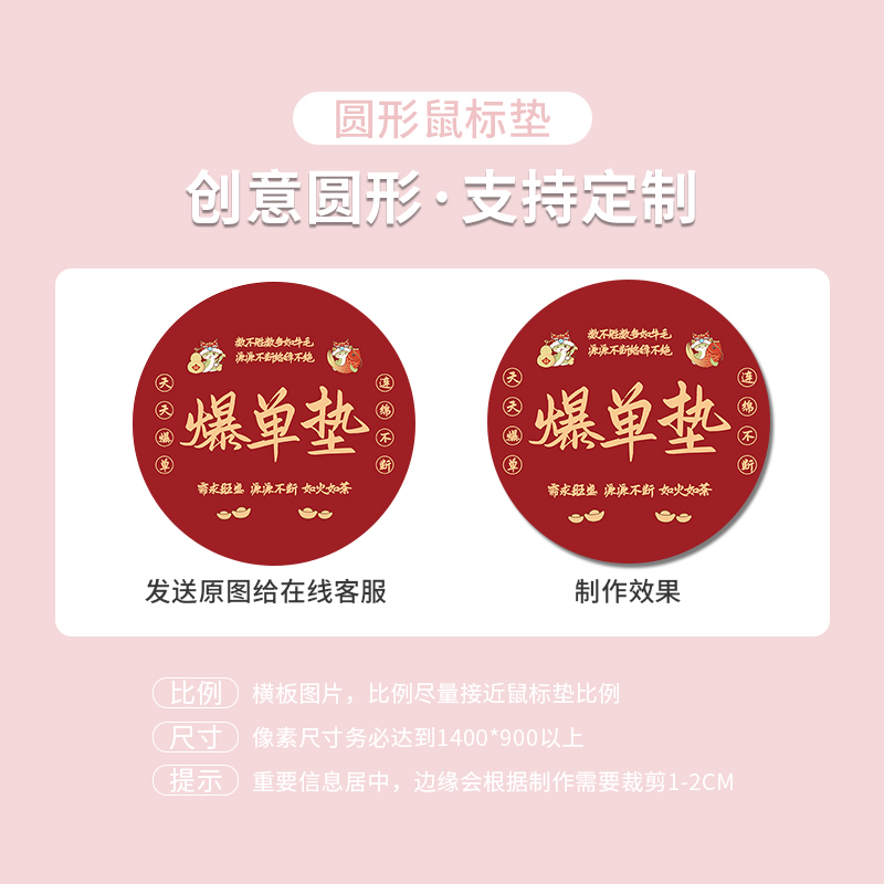 暴富垫鼠标垫子ins电脑办公桌垫打工职场男女生笔记本键盘圆桌垫