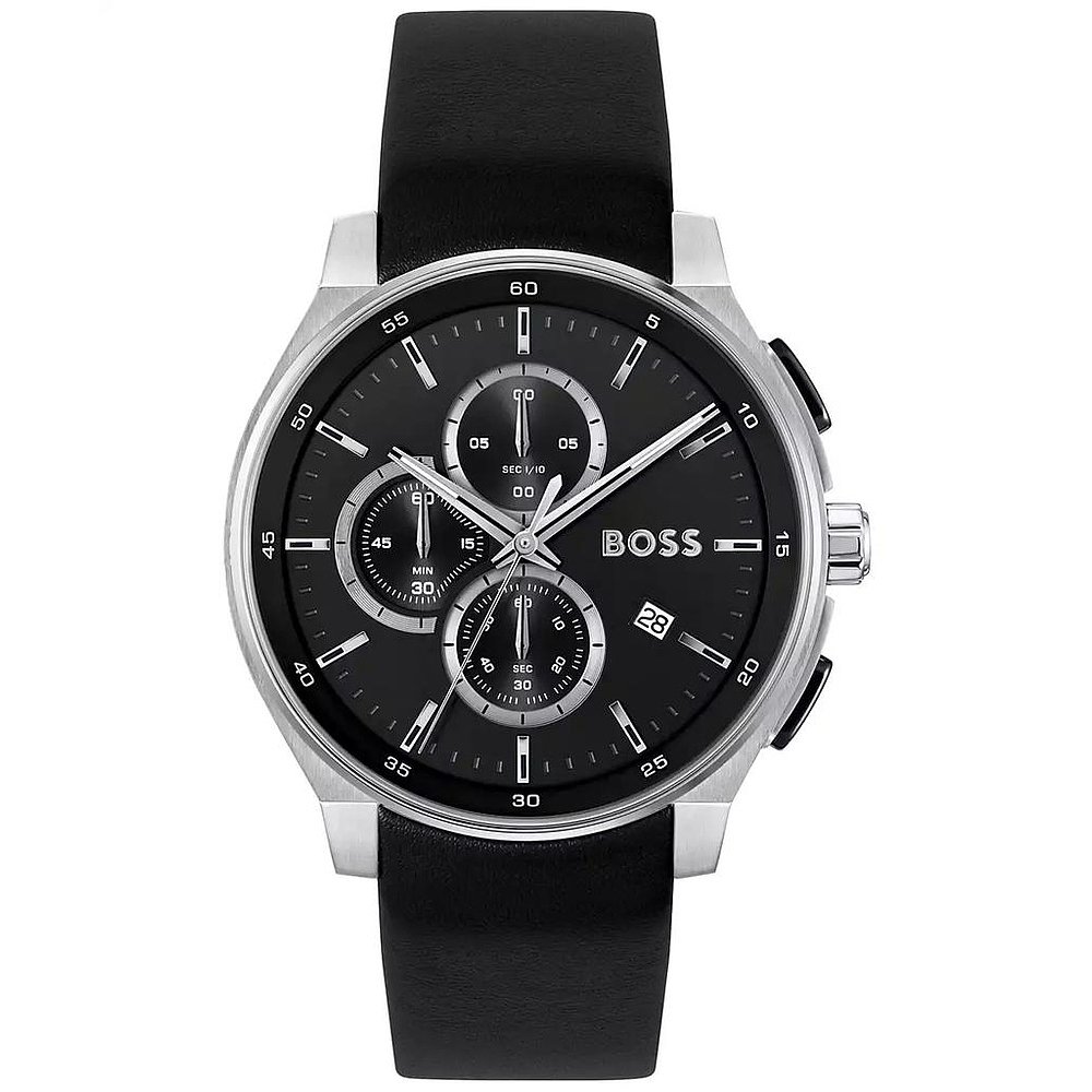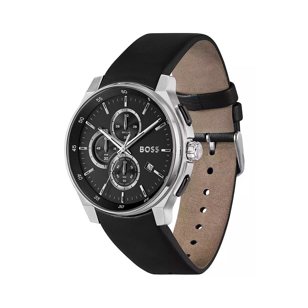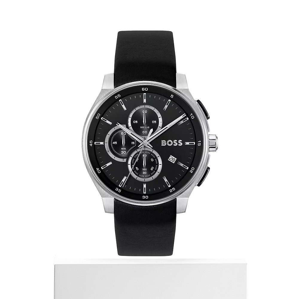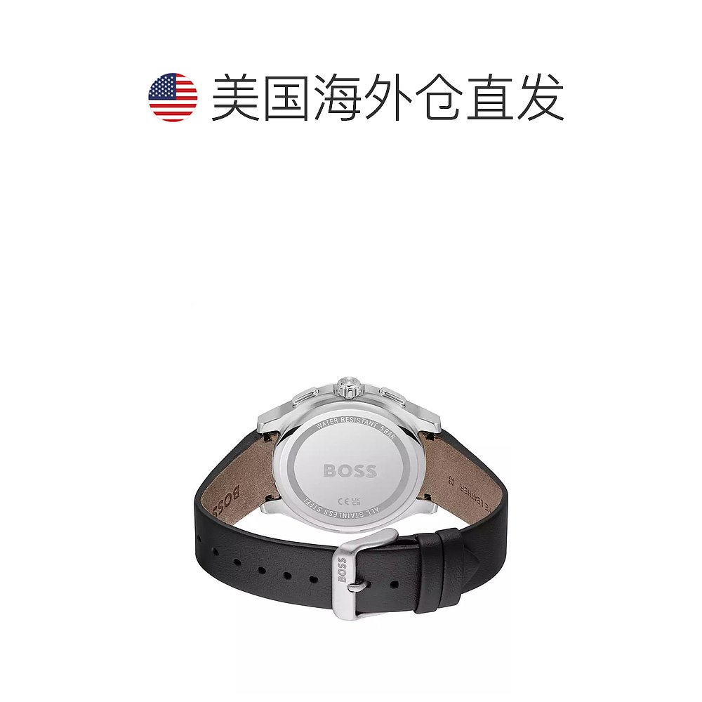 Boss Peak 1h可退 男士 Hugo 石英计时黑色皮革手 美国直邮