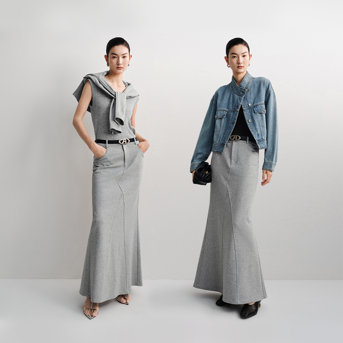 垂感宽松包臀半身裙 高腰显瘦a字中长款 灰色鱼尾裙女2025新款 秋季
