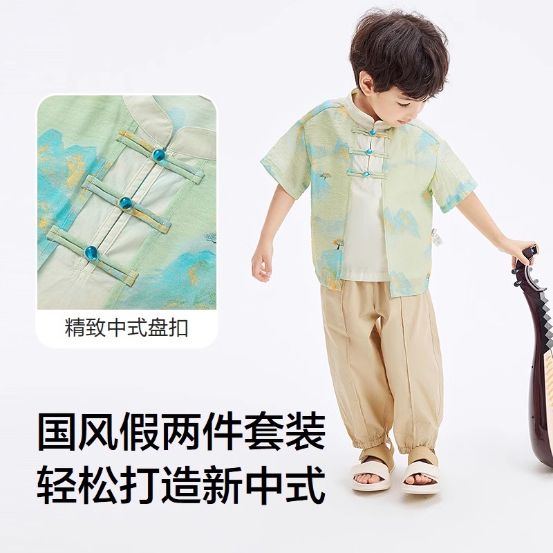 童装 巴拉巴拉男童汉服套装 新款 两件套夏装 儿童国风衣服薄 宝宝短袖
