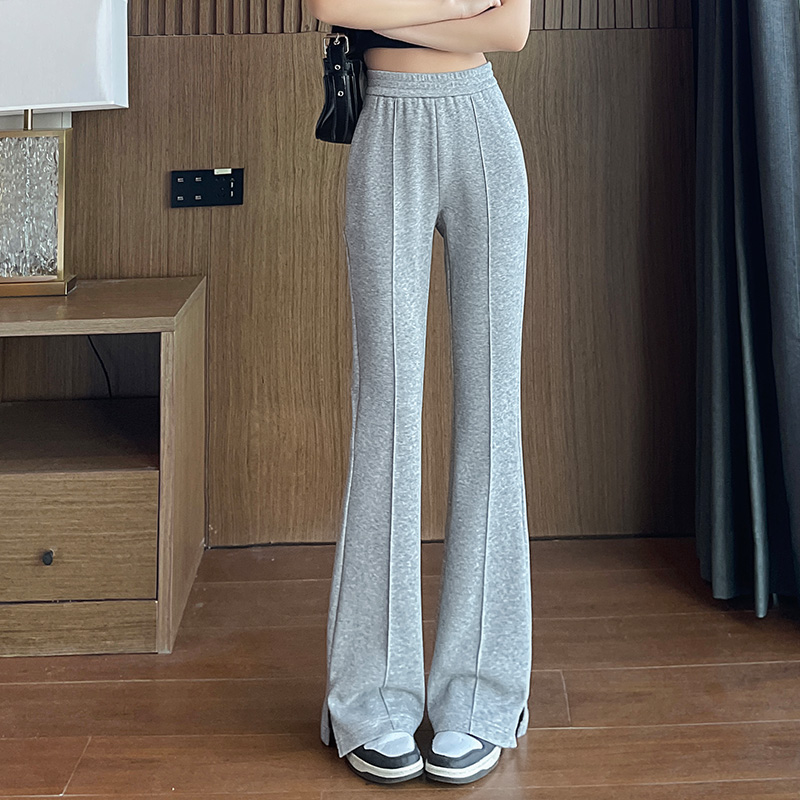 高腰显瘦马蹄裤 女春夏2025新款 灰色微喇叭运动裤 休闲卫裤 清仓