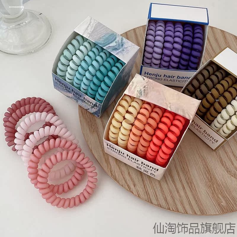 糖果色电话线发圈防水颜色好看无痕发饰韩国时尚 橡皮筋青色简约
