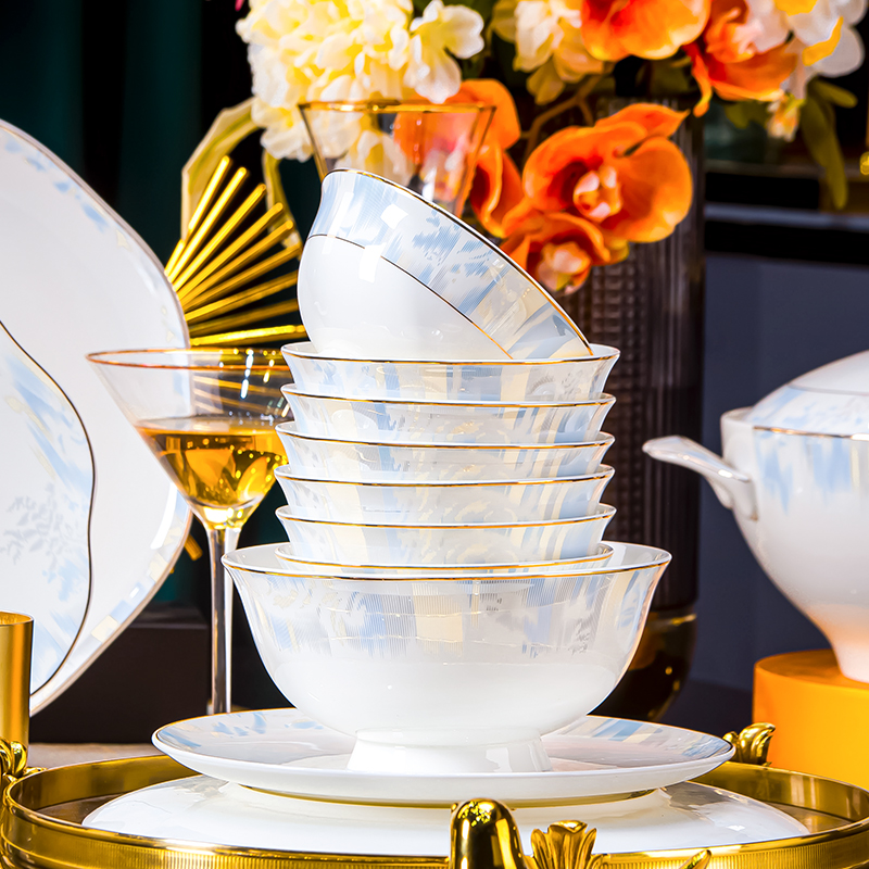 高颜值碗盘乔迁新居碗具釉下彩碗筷 家用2025新款 法式 碗碟餐具套装
