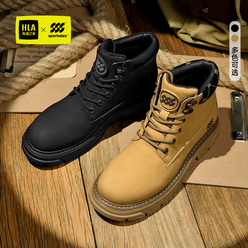靴休闲马丁靴 SportsDay春夏大黄靴复古高帮工装 HLA 海澜之家男鞋
