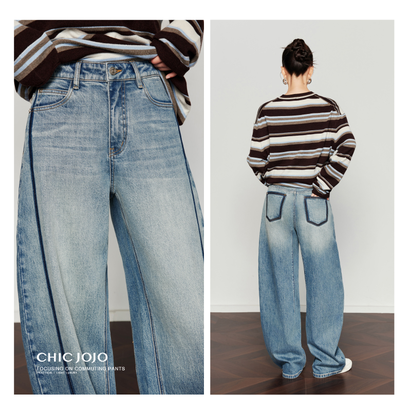 女2025秋设计感弯刀休闲裤 CHICJOJO牛仔香蕉裤 子 艺术畅想曲