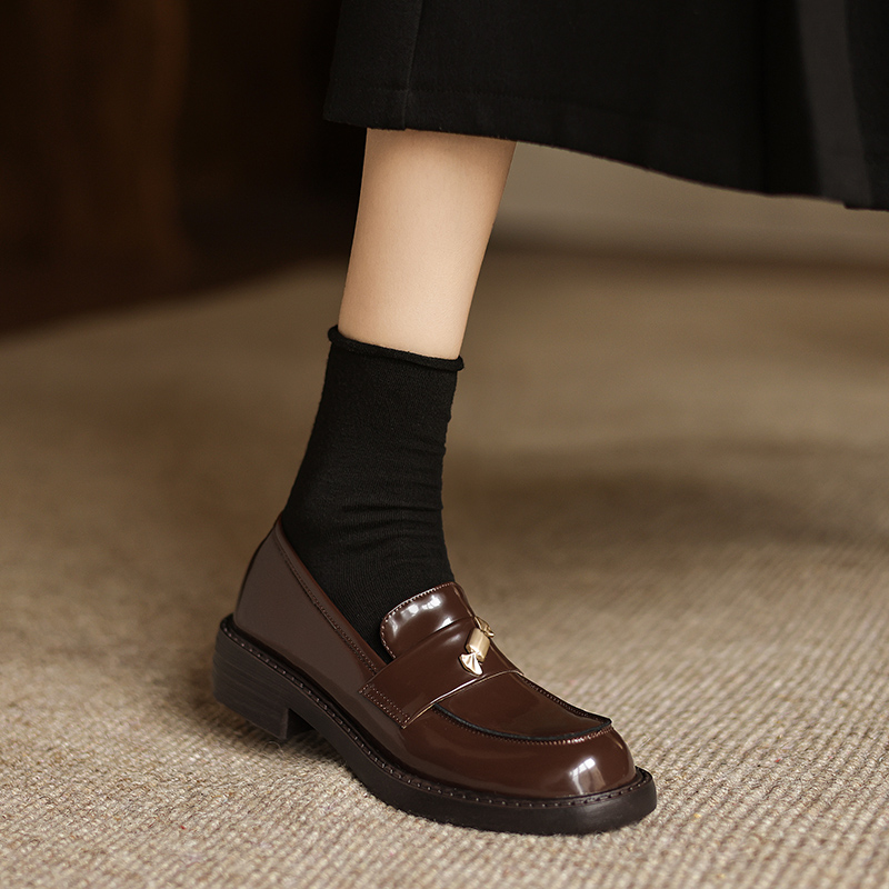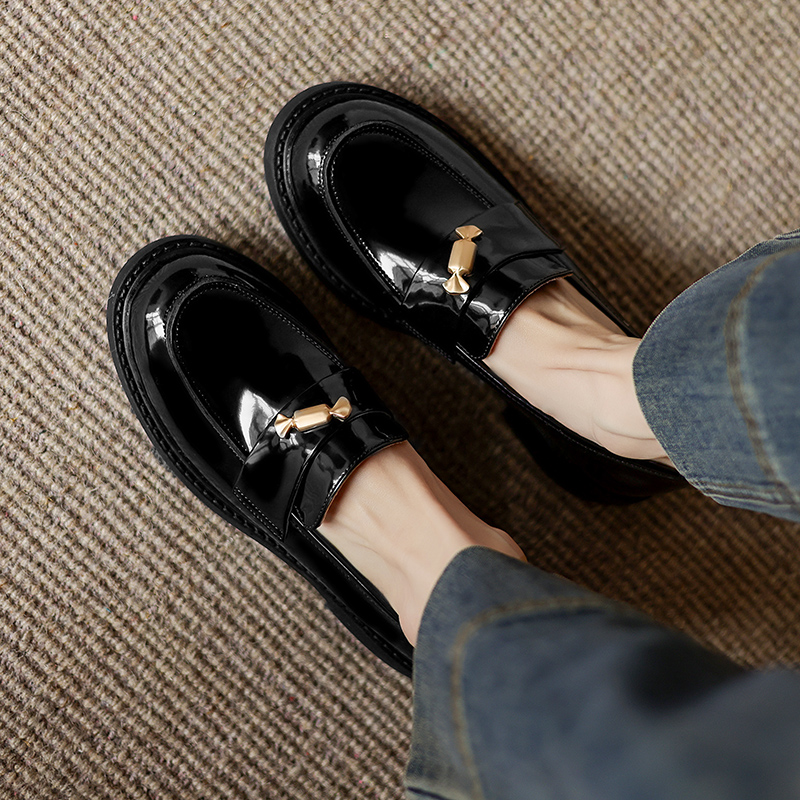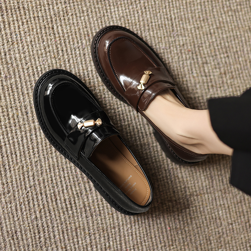 女 单鞋 真皮厚底增高漆皮圆头黑色粗跟小皮鞋 学院英伦风糖果乐福鞋