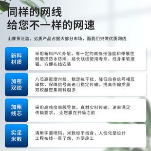 纯铜千兆网线超五类六类家用高速宽带POE监控6类网络线无氧铜300m