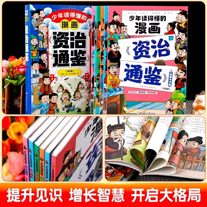 漫画资治通鉴小学生版 二三四五六年级儿童课外阅读书籍正版 原著白话文版 资治通鉴漫画版 写给孩子 少年读得懂 青少年版 全套6册