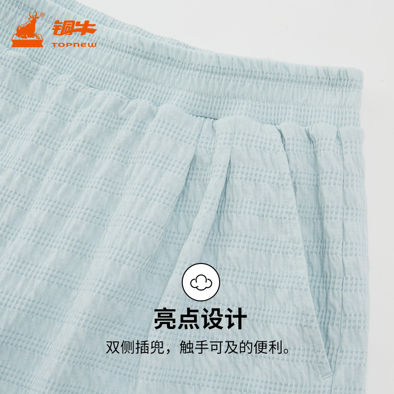 铜牛bless系列系列棉混纺横纹皱布小A摆女居家下装 女夏VK220 短裤