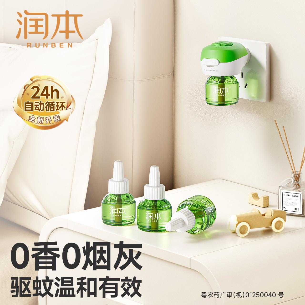 润本电蚊香液无味婴儿童宝宝巾家用室内插电式 驱蚊专用灭蚊补充液