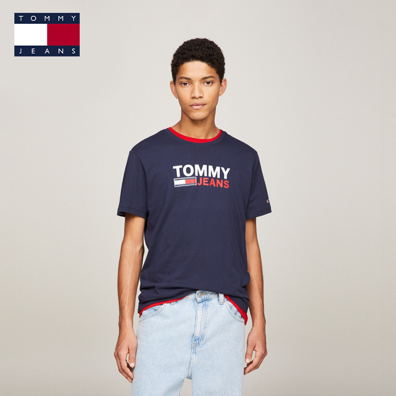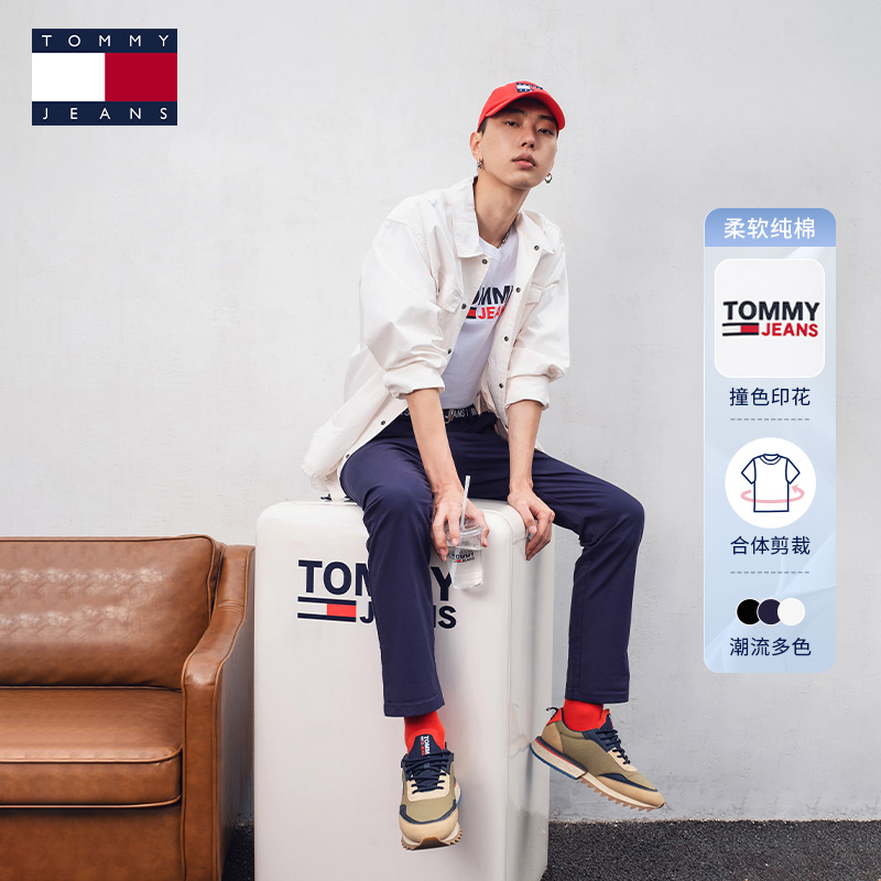 活力休闲字母旗标印花运动短袖 Tommy春夏男女美式 T恤 纯棉合身