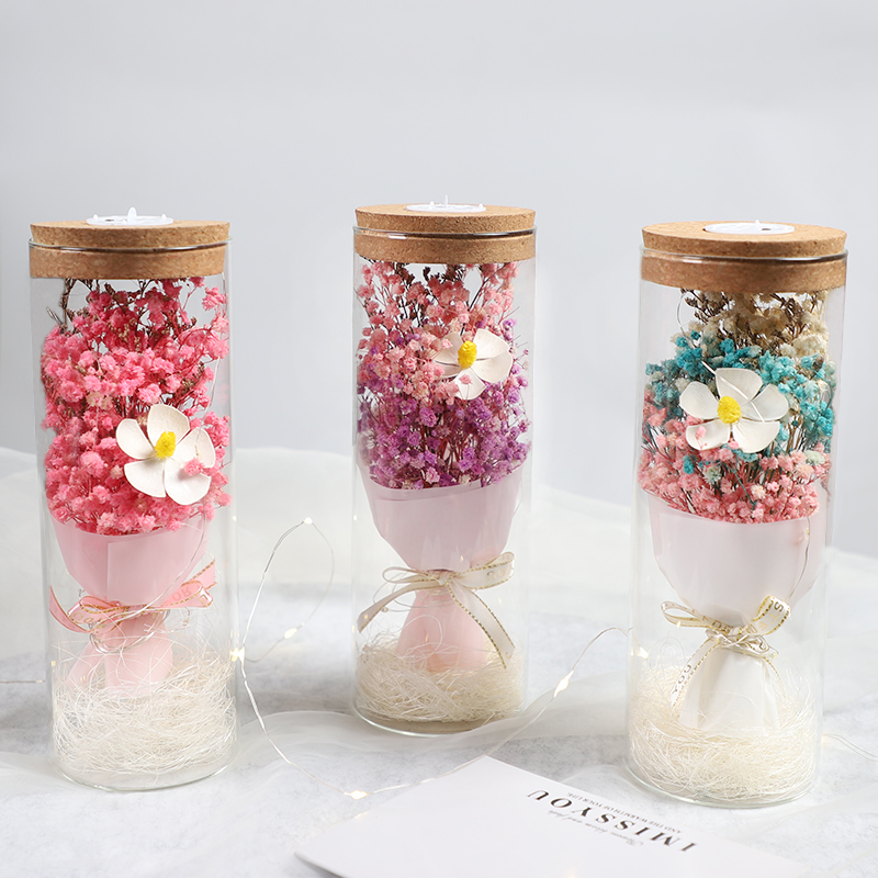 情人节浪漫满天星干花送女友玻璃罩礼物向日葵永生花摆件玫瑰花束