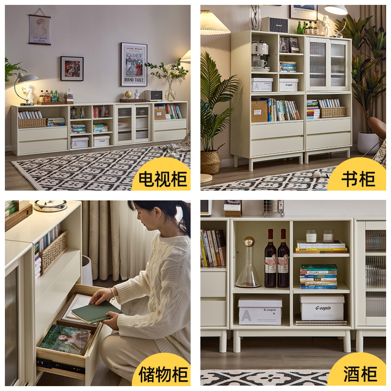 背景墙书柜一体客厅电视柜两边摆设旁边储物边柜侧柜单个组合靠墙