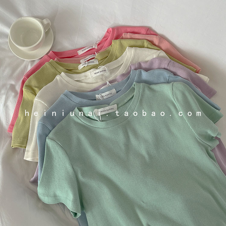 圆领上衣女辣妹款 2025新款 t恤女春秋内搭修身 女螺纹短袖 打底衫
