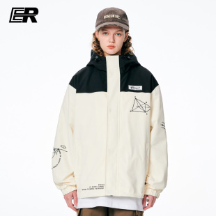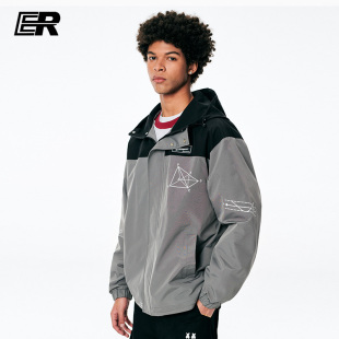 ER几何数学印花拼接撞色连帽外套情侣外套夹克 朱志鑫同款