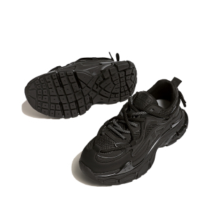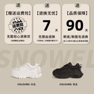 新款 SNOWELF黑色老爹鞋 2025秋冬加绒厚底增高小蛮腰运动休闲女鞋