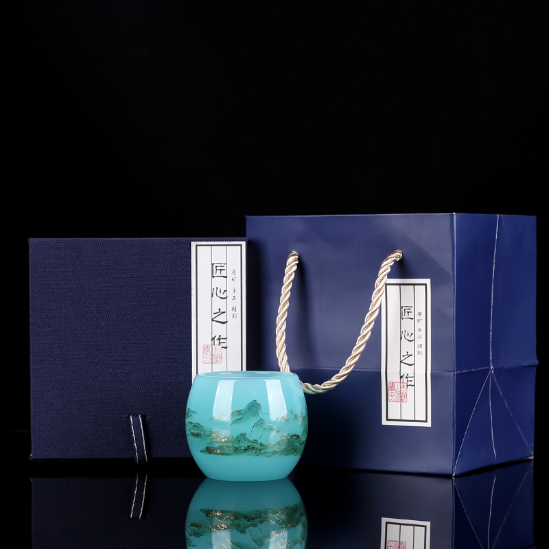 青苹果家用玻璃杯喝水杯子泡茶杯办公室有盖男女士水杯带把大容量