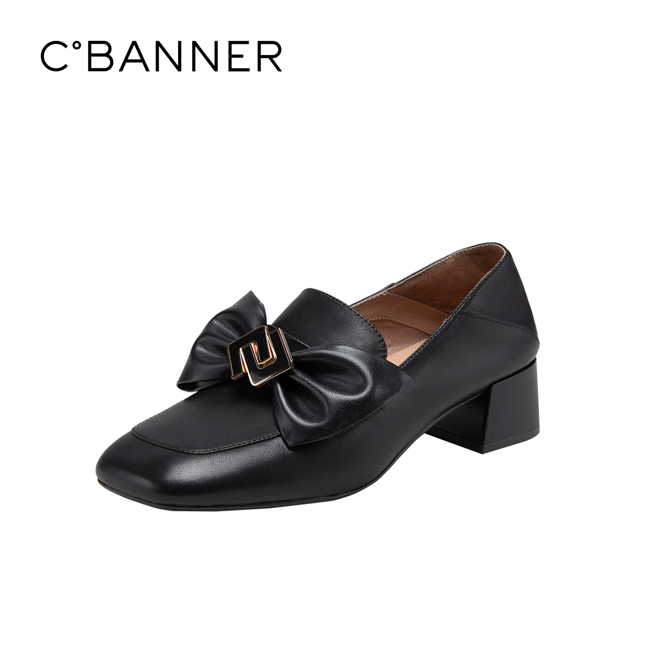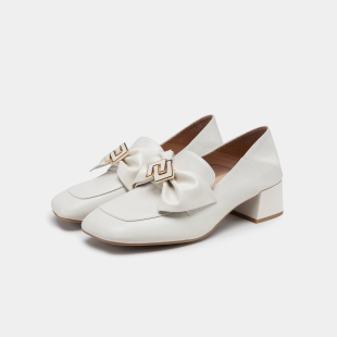 秋季 子小皮鞋 新款 中跟气质舒适优雅潮流鞋 方跟乐福鞋 千百度女鞋