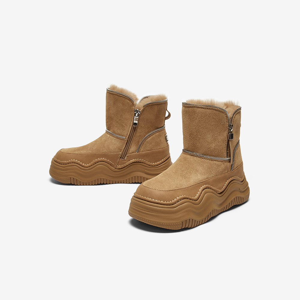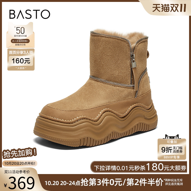 短靴X1596DD4 加绒休闲雪地靴厚底增高女棉鞋 百思图冬季 商场新款