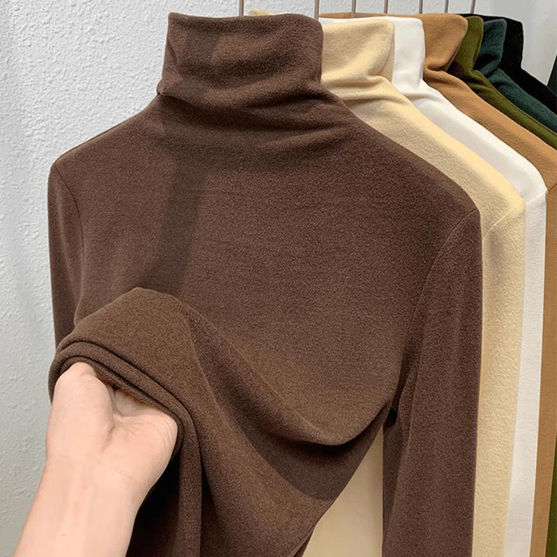 上衣加厚一体绒保暖白色毛衣女 打底针织衫 秋冬半高领修身 紧身长袖