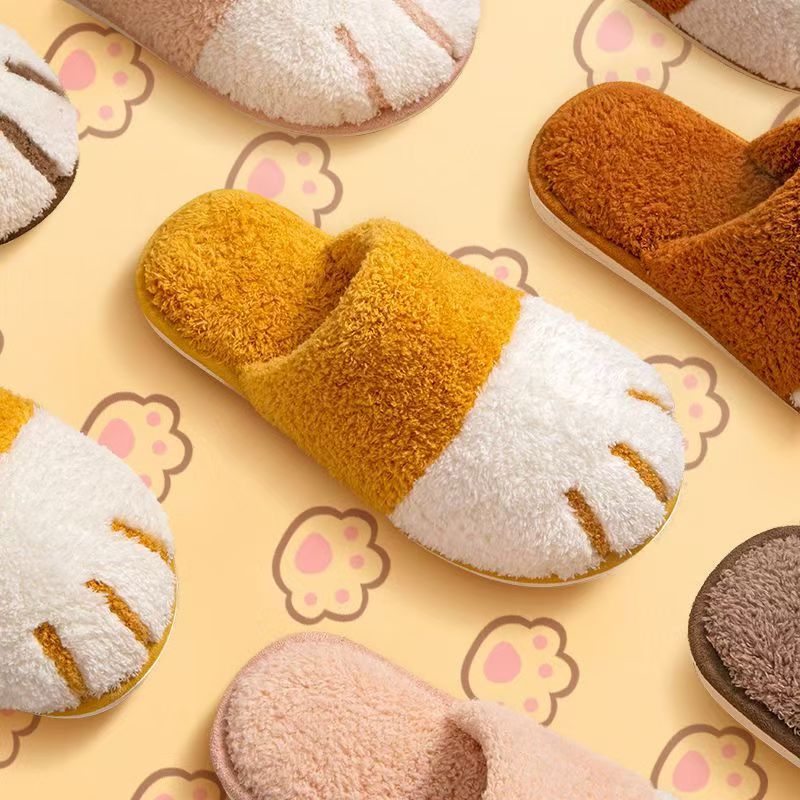 棉拖鞋 卡通毛绒可爱厚底保暖情侣室内外 居家用猫爪秋冬防滑女冬季