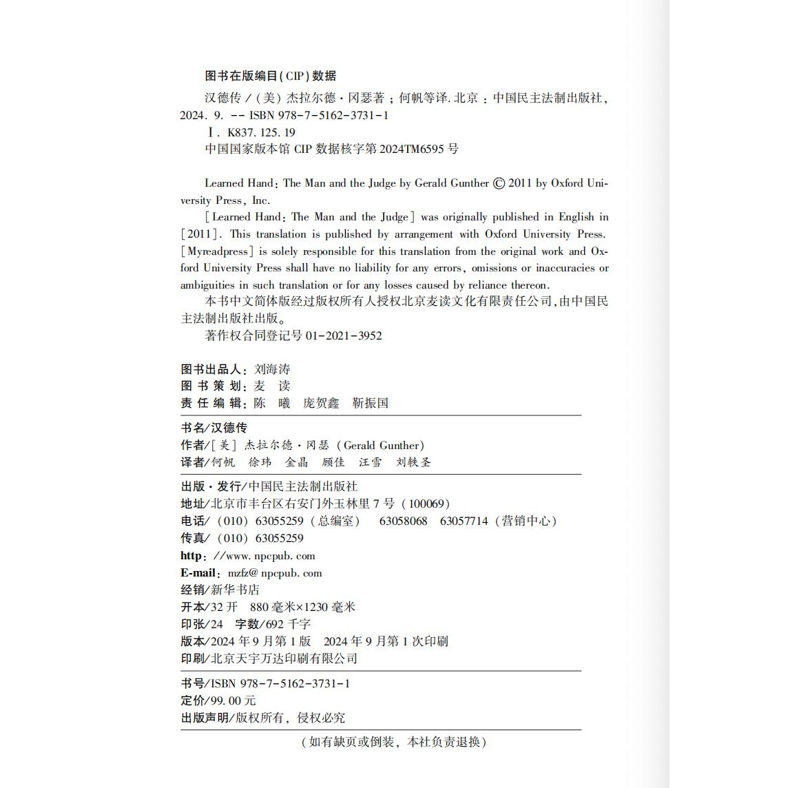 著 何帆等译 金斯伯格大法官作序 汉德传:传奇法官和他 战争与和平 杰拉尔德·冈瑟 法律界 法官传记 裁判