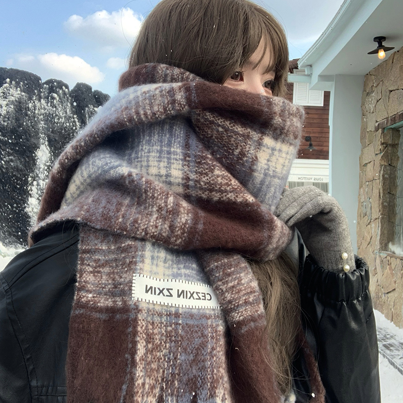 格子围巾女冬季 高级感格子披肩保暖韩系氛围感学生披肩百搭围脖潮