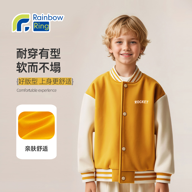 男童外套秋冬新款 休闲夹克儿童春节服上衣 红色棒球服时髦洋气童装