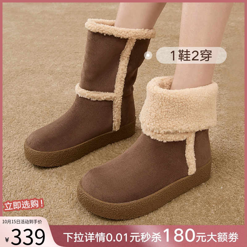 短靴M5311DZ4 加绒加厚保暖雪地靴厚底女极寒大棉鞋 百思图冬季 新款