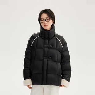 式 太平鸟男装 衬衫 宽松短款 保暖外套黑色防寒夹克 轻薄羽绒服冬季