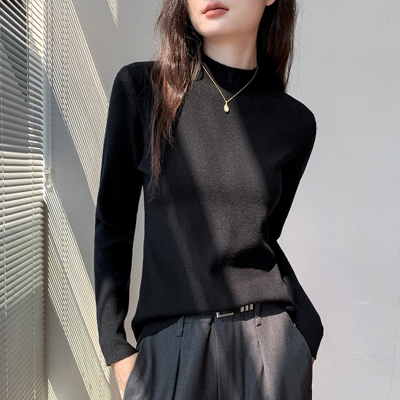 羊毛上衣 2025新款 打底衫 女半高领黑色内搭高级感秋冬针织毛衣女装