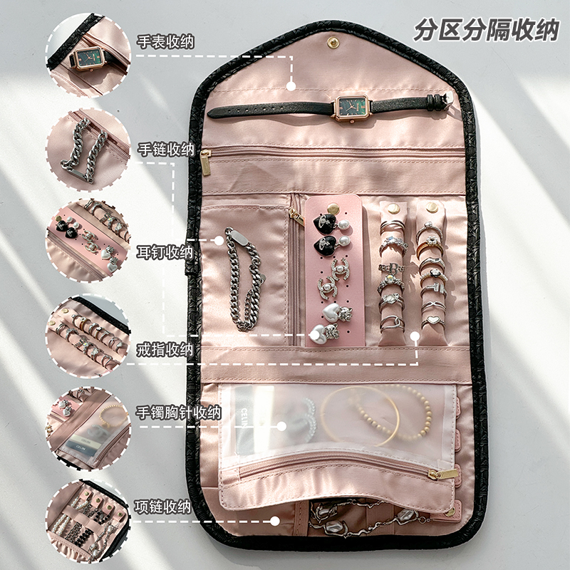 便携首饰袋折叠大容量项链戒指收纳包外出旅行耳钉耳环饰品储物册
