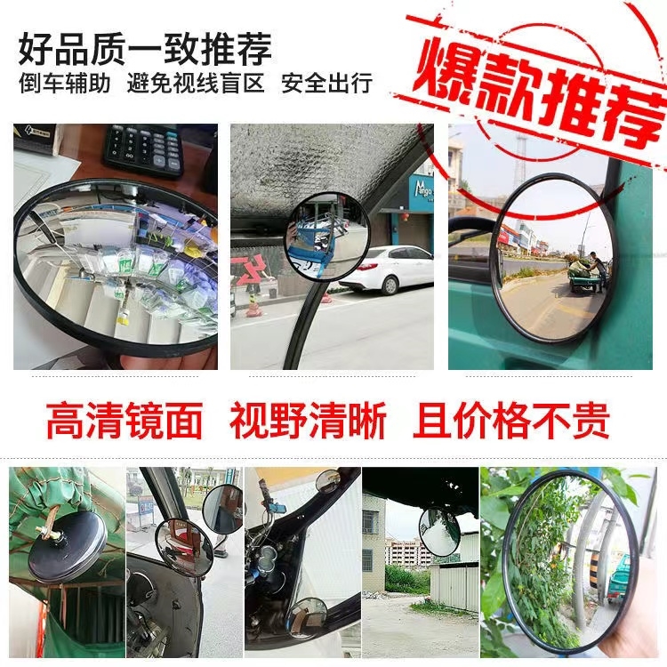 电瓶车后视镜小圆镜电动通用摩托车三轮车凸面镜带棚改装 倒车镜子