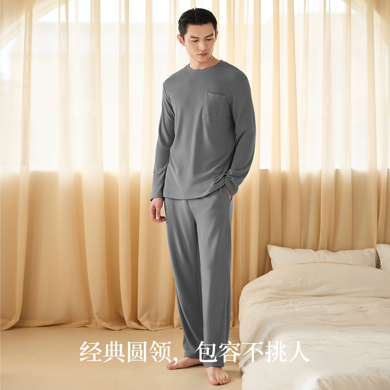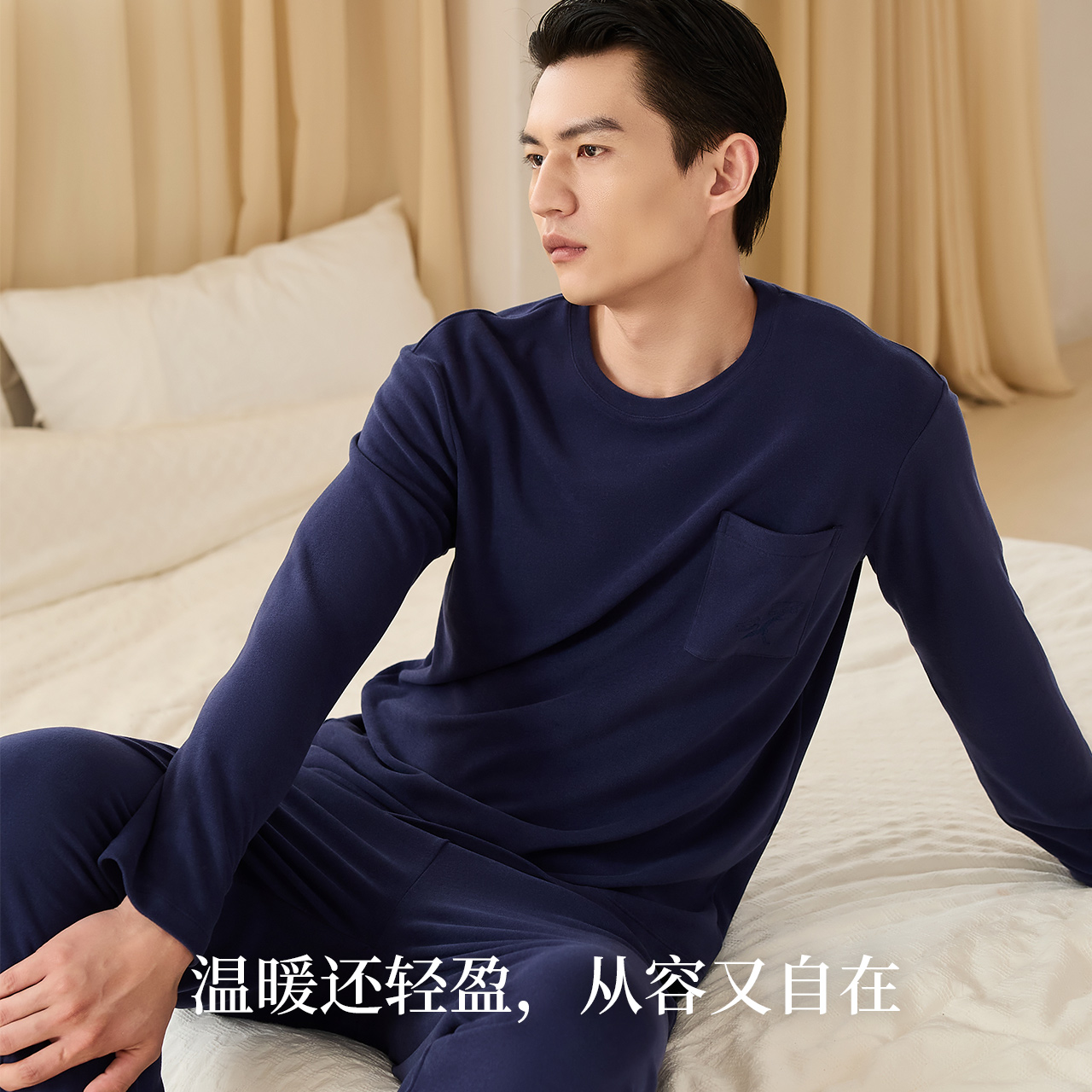 睡衣春秋款 青年家居服套装 圆领套头夏季 秋冬大码 薄长袖 莫代尔男士