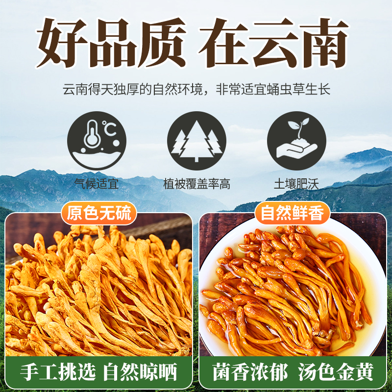 云南特产虫草花干货精选新货蛹虫草鸡汤煲汤孢子头菌料包炖汤食材