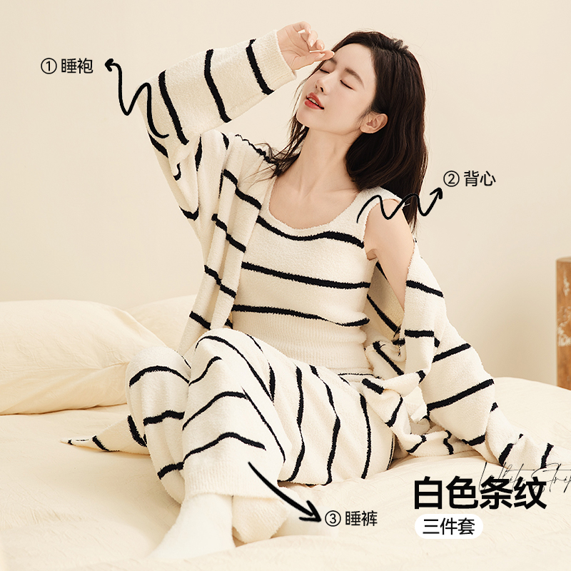 俞兆林半边绒睡衣女秋冬季 睡袍可外穿家居服 珊瑚绒保暖三件套长款