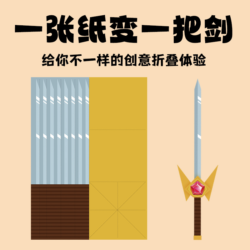 儿童手工diy3D立体折纸兵器刀剑模型套装 幼儿园创意男孩益智玩具